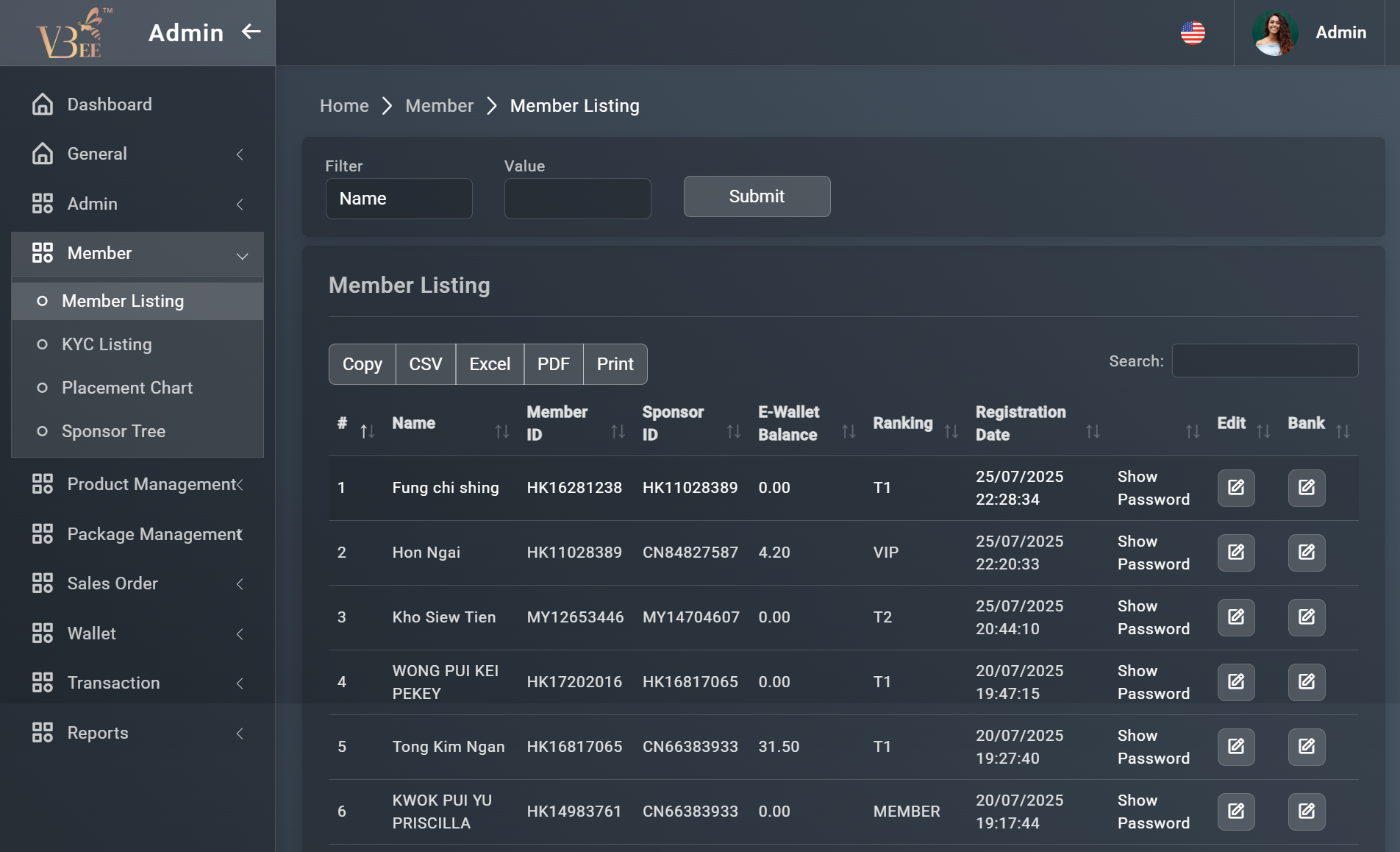 VBee Life is a comprehensive e-commerce platform integrated with advanced multi-level marketing capabilities. The system provides a complete solution for online sales, member management, and bonus calculations tailored to business needs.