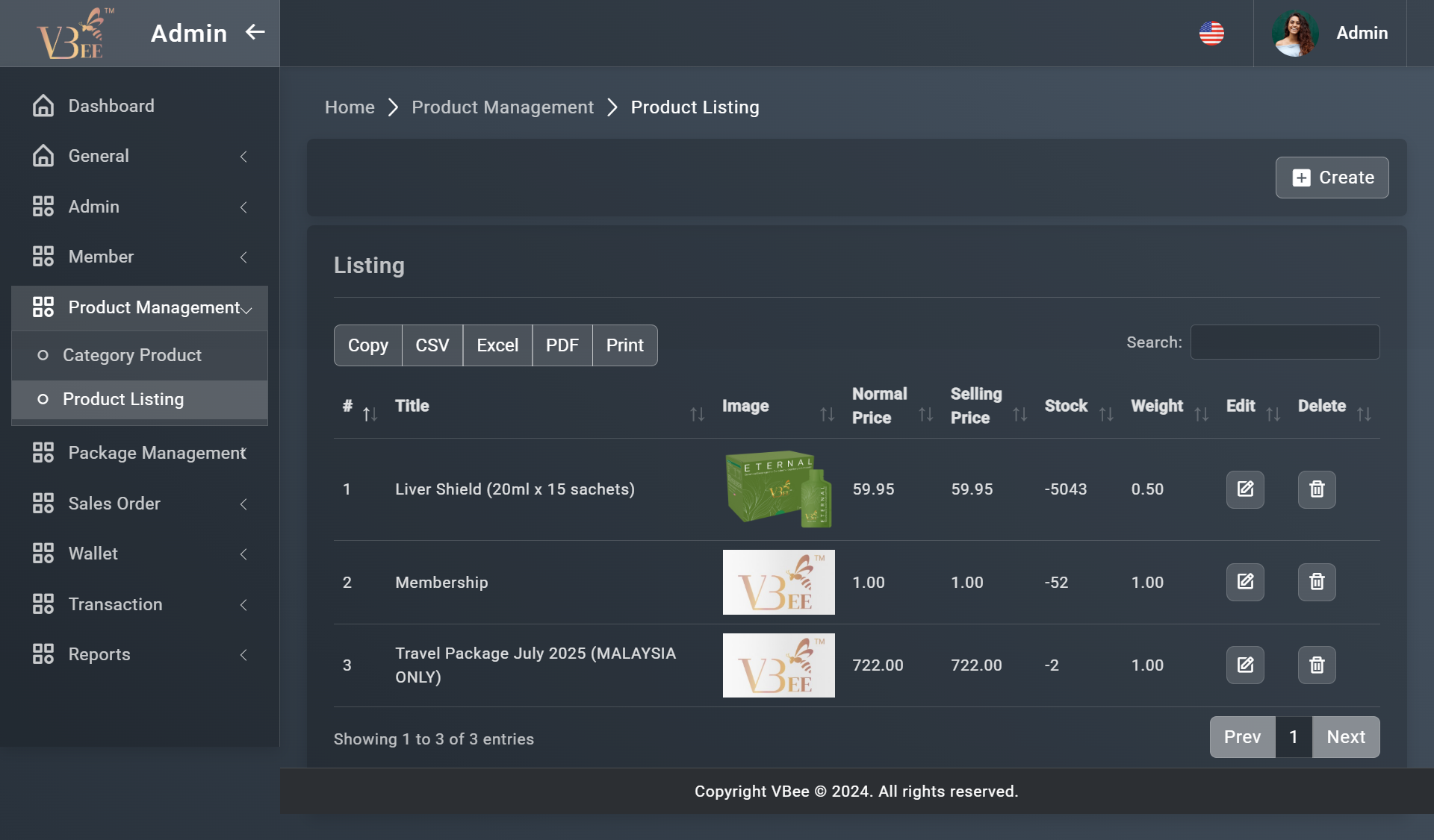 • Advanced admin panel for configuring e-commerce product settings, managing orders, and viewing detailed reports and bonus calculations